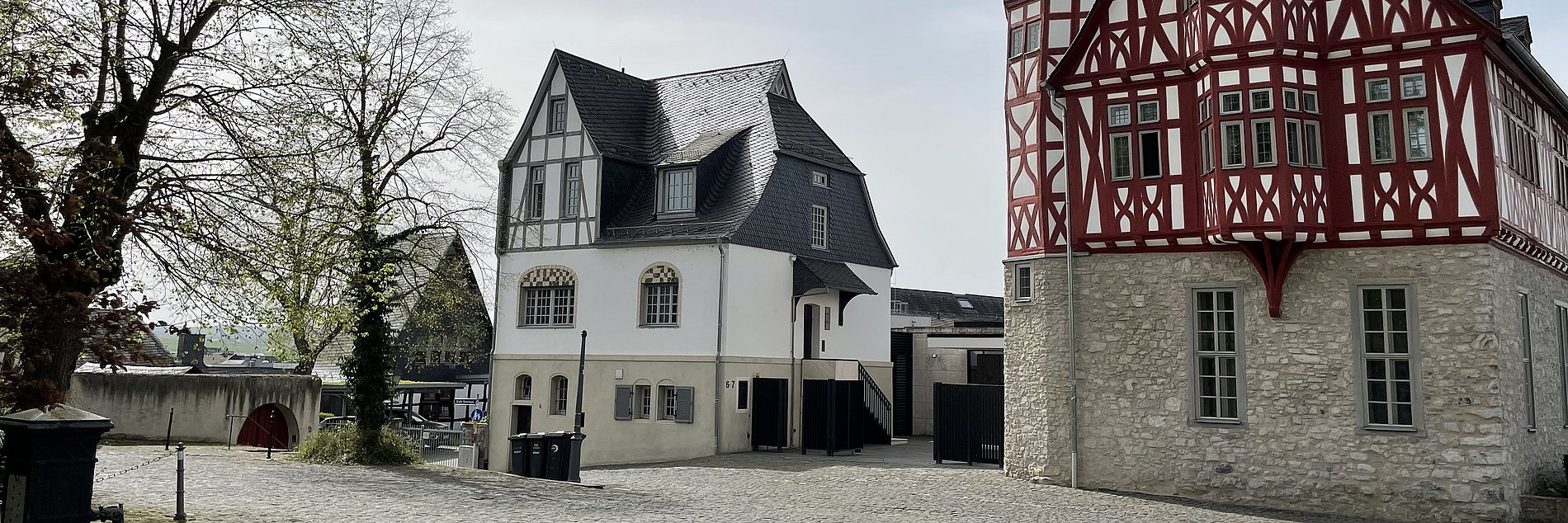 - Wenden Sie sich nun nach rechts und gehen Sie den Kornmarkt Richtung Kolpingstraße entlang, zwischen der Bäckerei Hensler und der Limburger Kaffeerösterei den Hügel hinauf.