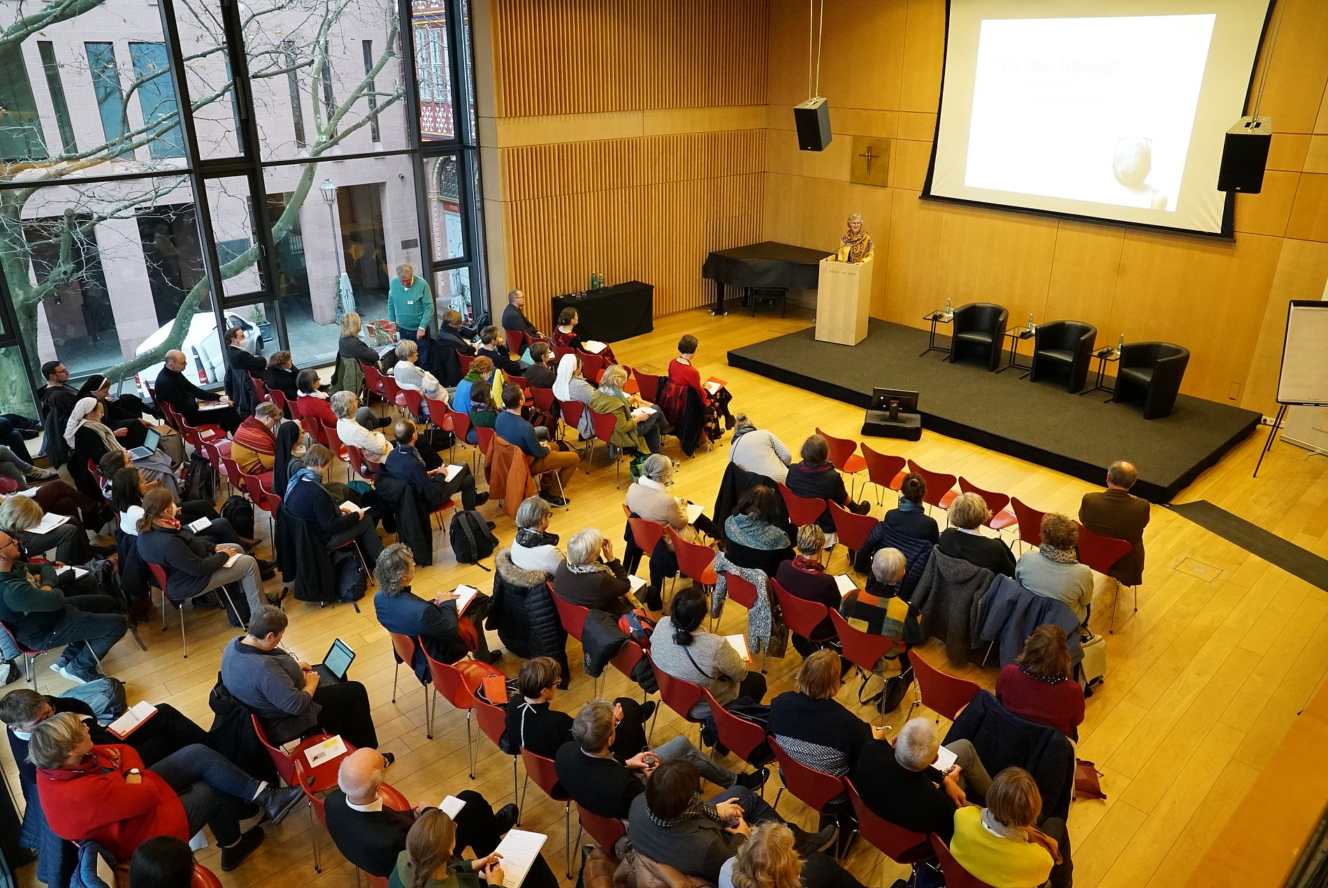 Die Kirchenkrise führt nicht nur zu einem Infragestellen der Institution Kirche, sondern auch zu einer tiefen Erschütterung des persönlichen Glaubens. Darauf hat Professor Dr. Julia Knop bei einer Fachtagung zum Thema „Spirituelle Autonomie“ am vergangenen Freitag und Samstag, 2. und 3. Dezember, im Haus am Dom in Frankfurt hingewiesen. „Einer Kirche, der man nicht mehr traut, dass sie es ernst meint mit Umkehr und Erneuerung, glaubt man irgendwann gar nicht nichts mehr.“ Das betreffe nicht nur Ämter und Strukturen, Recht und Liturgie. „Das betrifft vor allem deren Niederschlag in meinem eigenen Denken, Glauben und Beten“, sagte die Erfurter Theologin. Dass die kirchliche Lehre durch das komplexe Versagen und den offenkundigen Zusammenbruch der Kirche gerade ihre Autorität, ihren Wahrheitsanspruch, kirchliche Repräsentanten ihre Glaubwürdigkeit und kirchliche Gebete und Gottesdienste ihre Heiligkeit verlören, sei für viele kirchlich-geprägte Menschen eine dramatische Verlusterfahrung, die zu Leerstellen im eigenen Glauben führe. Gläubige seien nun gezwungen, diese Leerstellen durch eine persönliche Auseinandersetzung mit dem Glauben wieder zu füllen und eine neue Souveränität im Glauben zu entwickeln. „Souveränität im Glauben zu entwickeln, ist keine Selbstverständlichkeit. Es ist ein Kraftakt.“
